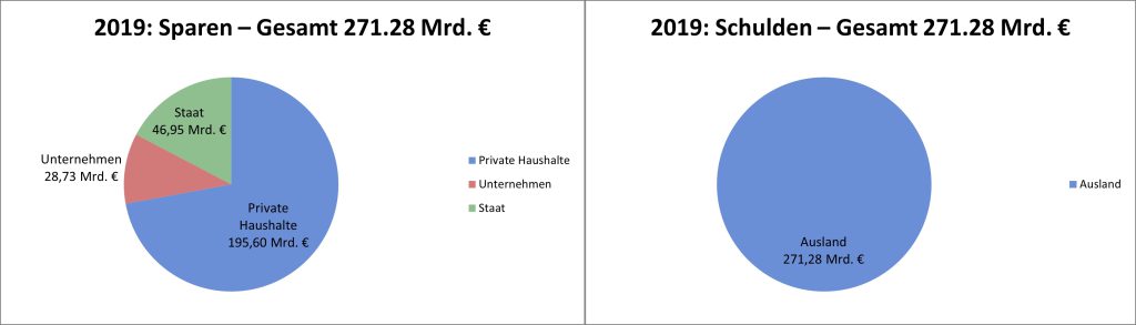 The world as a whole can only ever spend as much as it earns and, this is the part that many people do not understand, it can only earn as much as it spends. The world cannot live either below or above its means. Only individual countries can have surpluses of income over expenditure (current account surpluses), which are necessarily offset by current account deficits in other countries. The state must ensure that savings plans on the one hand and the willingness to take on debt on the other lead to overall satisfactory economic development. This means that the state can never assess and evaluate its debt situation in a rational manner if it does not know or does not take into account what is happening in other sectors.