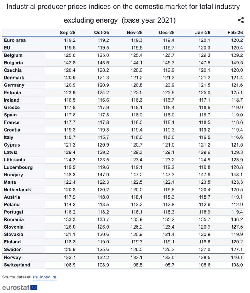 Today saw yet another interesting and extremely important statistic that has gone unnoticed by both the media and so-called economic science. As it does every month, Eurostat published the trend in producer prices for the manufacturing sector. The latest available figure is for February, i.e. the figure not yet influenced by the US-Israeli war of aggression, which contravenes international law.